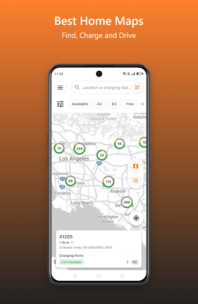 - Localisez les bornes de charge à proximité ou recherchez des stations EV dans un endroit, avec des informations de disponibilité en temps réel.